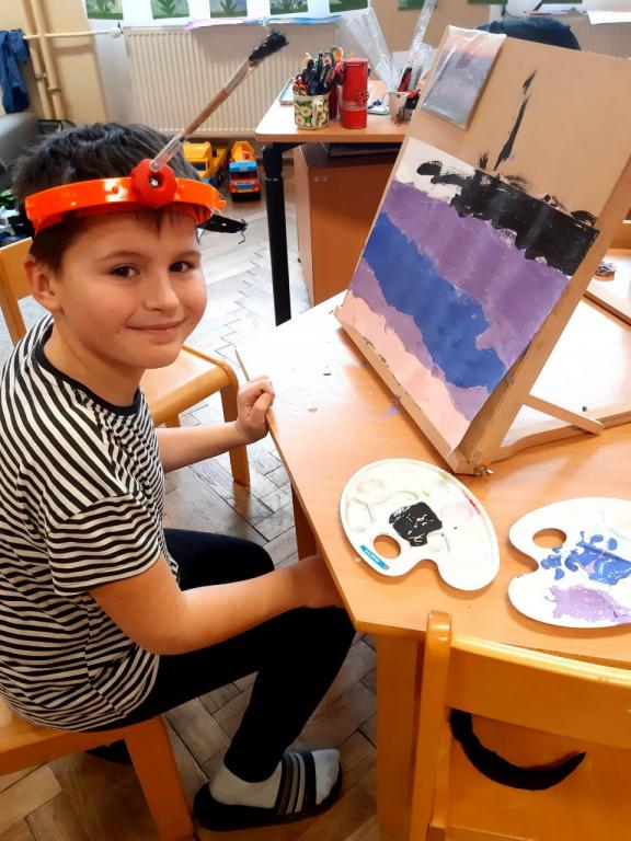 Obrázek pro T. Rybičku - chlapce, který maluje hlavou