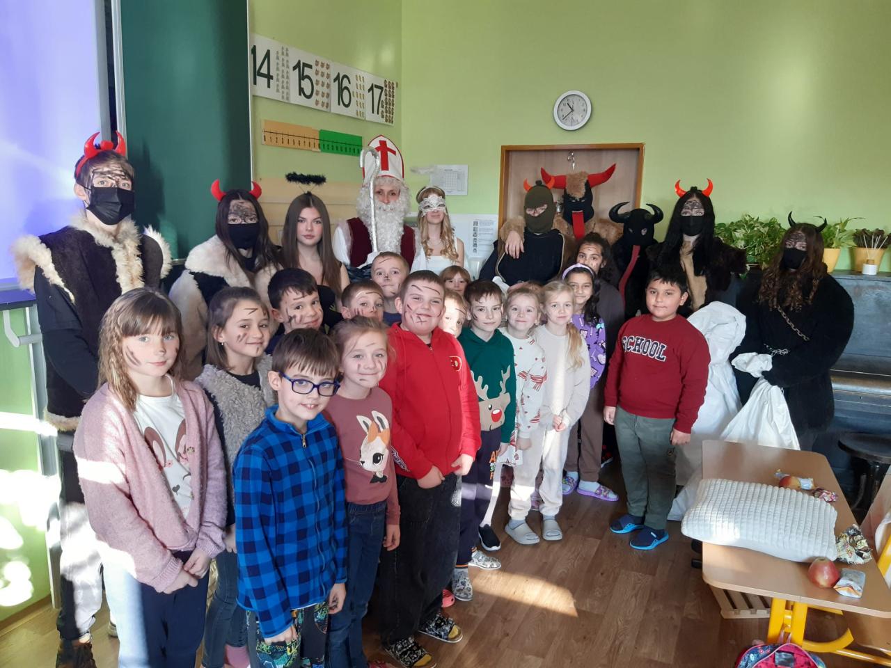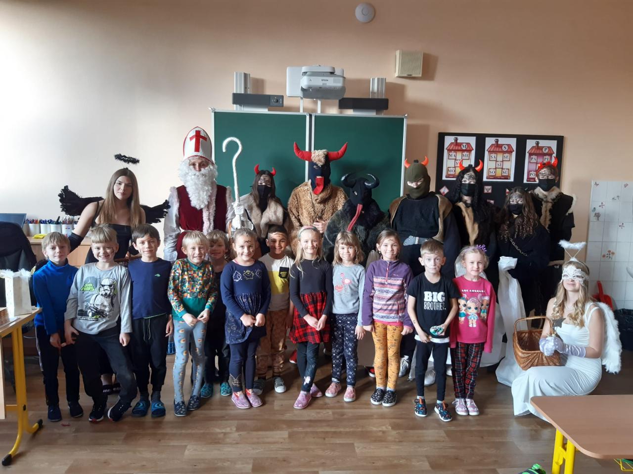 Čerti s Mikulášem ve škole.
